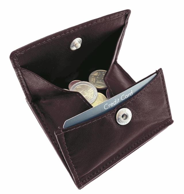 Rechteckiges, auffaltbares Münzfach mit integriertem Steckfach